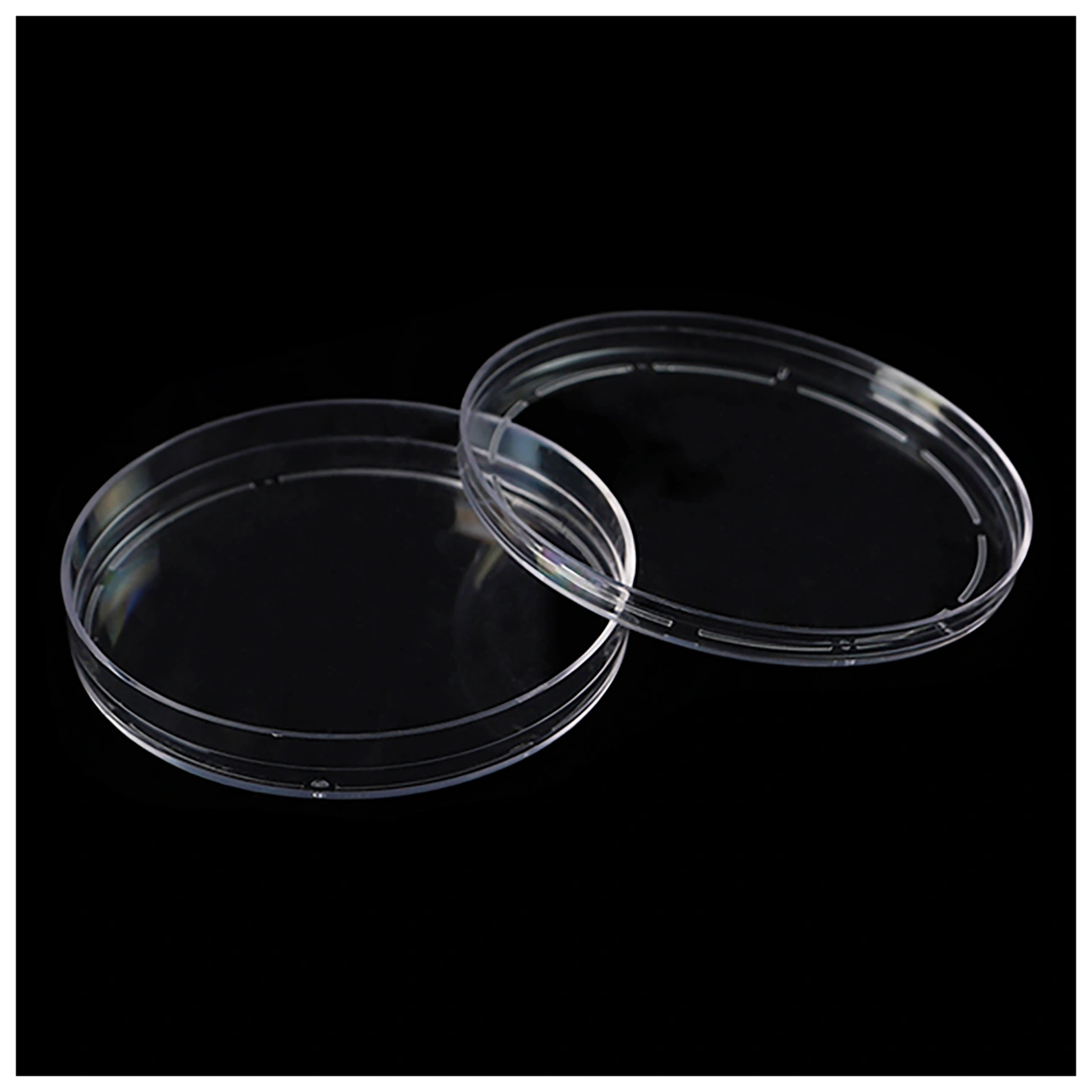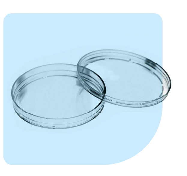 Fabricadas en Poliestireno Cristal (PS), cuentan con unos pequeños sobrerrelieves en la cara interior de la tapa para asegurar una ventilación óptima, apoyos en la base para mayor estabilidad durante su uso y un proceso de esterilización por ionizado, el método más seguro para eliminar cualquier carga microbiológica previa.
